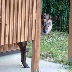 森のトイレで鉢合わせ ニホンカモシカは おとなしいからよかったぁ💦 けど、動いてくれないので トイレに行けず😅 これでも後退りして 写しました📱 トイレのドアを開けたら いたりして・・・等と 想像が膨らんでヤバかったです 海上の森にて