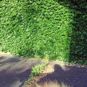 あの激しい雨はどこへやら……いい天気☀ 犬の散歩の途中🐶 壁一面ナツヅタ?びっしり~ 秋にはそれはもう見事に紅葉してます🍁 苔アートみたいに誰かアートしてくれないかな…