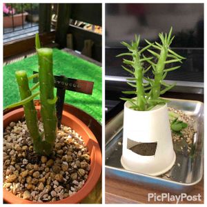 伸びすぎて カットした姫将軍❗️ 根っこも立派に出たので 迷った末に 親の横に植えちゃった🤣🤣🤣🤣 問題なし👍
