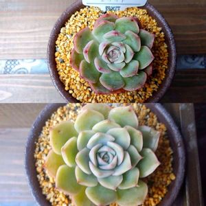 エゲリア 上が12月始め 下が1月始め 葉の色が薄くなってきました。本来の色に戻ってきたのかしら。 紅葉もどんな風になるのか知らないのですべて新鮮です。1年育ててやっとわかることが多そうなエケベリアです。