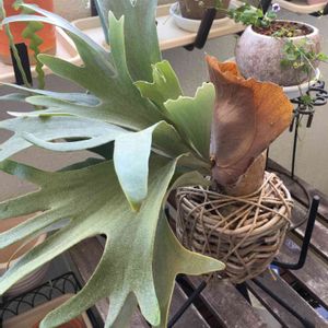 やっと、コウモリランの植え替え終了 着生する迄は麻ひも固定します😌