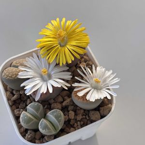 リトープスにハマってしまい、気付けばこんなに! 摩利玉、黄巴里玉、素敵な焼き物の鉢に植えられた小さなリトープスミックスは昨日の茅ヶ崎ボタニカルショーで購入したもの。 早速お花を見せてくれて幸せ🥰 ボタニカルショー楽しかった!