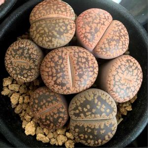 真上から📷 左上の大きめのは園芸店で、その他の小ぶりのはHCで見つけました😁 宝石みたいに散りばめたリトープス丼を作りたかったので、HCでのなんという出会い✨