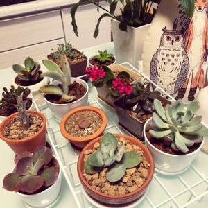 急な冷え込みで、昨夜から部屋に避難させた多肉さんたち😉 奥のハオルチア以外は普段は外置きです🌿 フクロウ祭🦉、参加させてくださいね🌟 何かと不穏な世の中ですが、🦉さんのご利益で幸せと平和が訪れますように💫 手前の赤みがかった子と、その横の平べったくて白っぽい緑の子は種類がわからない子たちです🌱 おわかりになる方、お教えいただければ嬉しいです🤗 もうすぐ4月というのにけっこう激しく雪が降っている日曜日です❄️