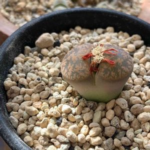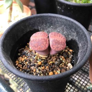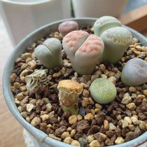 屋外用のリトープス。 リトープスの宝石箱とよく言われてるので、あえて宝箱に植えてみた。 越冬できるかな?
