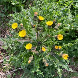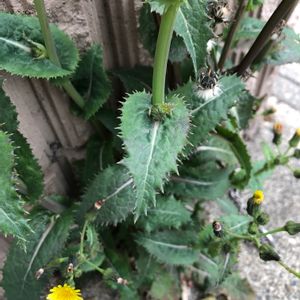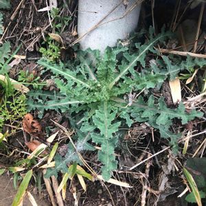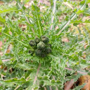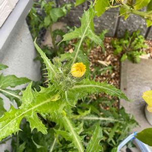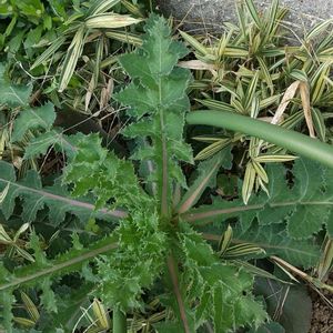 遊歩道のオニノゲシかなと思います。 トゲトゲがスゴイです。 写真撮ってると柵の向こうから犬が吠えまくり、心臓が止まるかと思いました😵