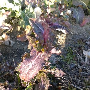 オニノゲシ(鬼野芥子) キク科 ノゲシ属 4~11月 50~120cm 帰化種 葉は長さ15~25cm 羽状に切れ込み、不規則な鋸歯の先には鋭い刺があって触ると痛い 葉の基部は丸く大きくまくれ上がって茎を抱く 茎は中空、多数の稜があり、赤色を帯びることが多い 花径約2cm、舌状花のみからなる 近所で見掛けるのはノゲシではなくオニノゲシばかり。。。