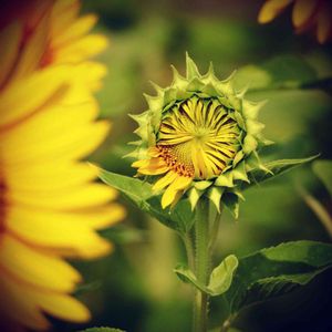 向日市の市花ひまわり🌻 今年のひまわりは背が高かった。(*´ー`*) 梅雨時の日照不足が影響してるのかな🤔 でも今年は綺麗に咲き揃ってました 置いてあった切り株の上に登り手を伸ばして📸