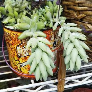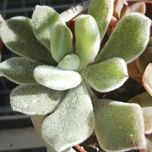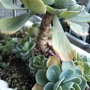 七福神さんです(⁎˃ᴗ˂⁎) 下葉が、枯れてますが😅 冬は仕方ないよね〜 寒さに耐えて頑張ってくれて 下にいる赤ちゃん七福神も頑張って💪おります!