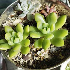 天竺さん紅葉中で、春萌さんはグリーン♥ その他、葉挿しでというか… ポイッと入れた子(*ơ ₃ơ)~🎵