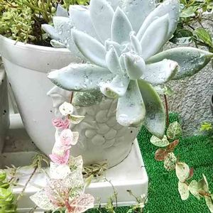 ☔雨あがりキラキラ♪ 綺麗だったので、パシャリ💕 霜の朝&ピンクになってる 初雪カズラ&まる葉の小さな ブロウメアナ等(⁎˃ᴗ˂⁎) 霜の朝さん前に出て正面に向いてるから正面からのパシャリしました( *´╰╯`) ♡*.。