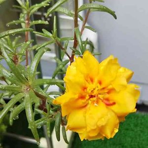 1つだけ咲いてたマツバボタン? いつの間にか伸びてた昨年の種が、落ちてたのかも🎶🤗 鮮やかな黄色い色♥