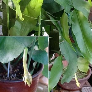 昨夜 9時半頃 見事に咲きました。 物凄く綺麗で、😀 物凄くいい香りを漂わせてます。最高に😆🍀 今朝は しょぼん(´・c_・`)っと うつ向いてる 😅 ありがとう 月下美人 でした。 💕💕