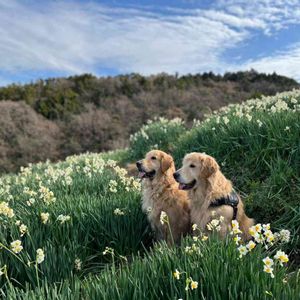 その水仙の中で、 お友達ワンコさくらちゃんと、 モデルになってもらって…