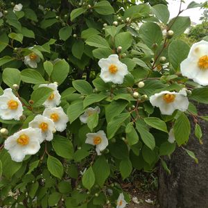 夜分に失礼します🌃 課題が終わらず昼夜逆転生活が続いてます(^_^;) 今日のお花*ナツツバキ* 6月上旬に水月公園で開催された花菖蒲まつりで撮影しました。 斉芳亭という東屋の近くに夏椿が植えられています。 白い花弁にうっすらと茶色い染みが浮かんでますが、これは模様? 花菖蒲まつりの様子はみどりのまとめに載せてあります🪻 色とりどりの花菖蒲の写真をたくさん詰め込みましたので、興味がありましたら是非ご覧くださいませ✨