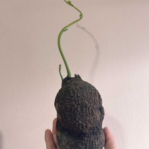お迎え( *´ `* ) 可愛くないですかーっ?😍って先輩に見せたら、え、全然。芋やん。てw なかなかわかって貰えぬビザールプランツの可愛さ。 根っこは切られつるつるだけど、頑張って新芽を伸ばしてる。 なかなかユニークなヘアスタイルしてるんやね☺️ 初めての現地株。 東南アジアのどこか出身。 頑張って根っこ出してよ〜✊🏻✨️