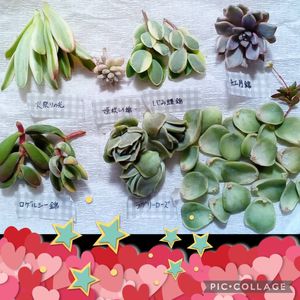 🏷️毎月13日と14日は葉挿しの日 久しぶりに参加させて頂きます ٩(。•ㅂ•。)و ↑から時計回りに 勝手に落ちたラウ065 勝手に落ちたピンクベリー やっと芽が出たラブリーローズ 結構出易い四馬路 カットした残骸アップルベリー 丼目指し中の緑牡丹 この時期は にょきにょき成長して 嬉しい限り(*´Д`*)