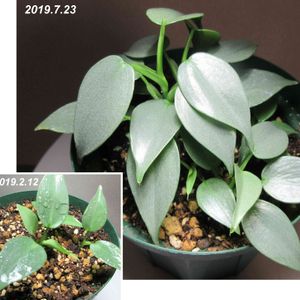 「フィロデンドロン シルバーメタル」 昨年9月に手を滑らせ落して腰が抜けて しまった「シルバーメタル」でしたが 復活する気配がなかったのでバッサリと 葉を残すことなくリセットしました 元の姿にはまだほど遠いですが少しずつ 大きくなってやっとここまでになりました