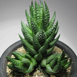 前回につづき撮りためた中の一枚で 特徴である白い模様がキレイに出ていません が姿形が気に入ったので連れて帰りました 白い模様が薄いと頼りない感じがしますが 他の硬葉系ハオルチア同様に元気で 手間もかかりません