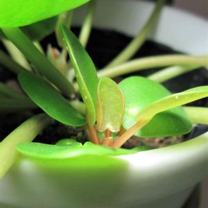 「ピレア ペペロミオイデス」のちびっ子です 親株は今ぐったりでお見せできません💦 早く分けれる位に大きくなってほしいですね 例年2月も末になると色んな植物が活発に 動き出すのでもうすぐ春だと教えてくれます