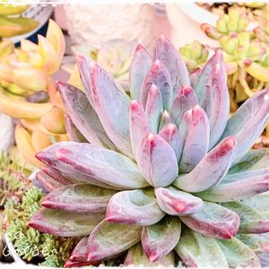 グラウカ (パキベリア属) 別名 リトルジュエル 💎 昨年12月に投稿しましたが、とても綺麗に紅葉しています₍₍ ( ๑॔˃̶◡ ˂̶๑॓)◞♡ ウォーターマークが、更にくっきりしていて、名前負けしていません❣️😆 ベランダに行くと、暫く眺めて癒されます(*˘꒳˘*) 大好きなリトルジュエルさん💎 好きすぎて、小ぶりの別の子も居ます(笑) 今日は、花粉が凄そう😭 3月もよろしくお願いします(*´˘`*)♡