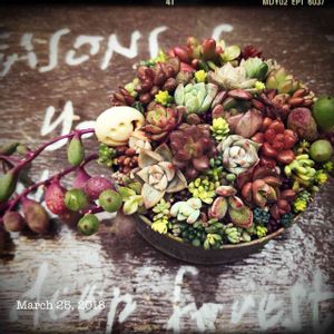 寄植え教室で作った木箱寄せのその後❤︎ とっても楽しかったなぁ〜(*´︶`*) ホワイトデーの横のピンクの花芽をつけたコは めずらしいらしいです でもそのコにかぎらずみんなちっとも 名前がわからない笑 追記:3/27ピンクの花芽ちゃんの名前判明 ジョセリンのバラ でした(*´︶`*)