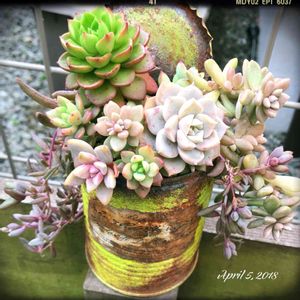 日当たりの悪い所にあったのを イロイロ寄せ植えたんだけど 日当たりのいい所へ置いといたら色が 変わってた( ̄▽ ̄)日当たり大事ね〜 shh garden rupoさんのリメ缶 でビフォーアフターがご覧いただけます(* ˘͈ ᵕ ˘͈ *)✾