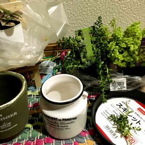 近所のスーパーで思いがけず出合ったセダム2個セットを衝動買いしちゃいました。 2つで¥299♪♪ それ以外はダイソーで買ったヒポエステスと鉢にする容器や雑貨。