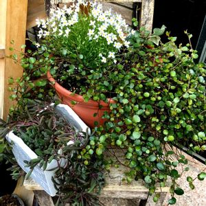 100均で買った白牡丹と三日月ネックレスを植え替えました。 いつもの様に玄関で。 その他は挿し木の子達。 ネックレス系は全制覇したいです! でももう小さな多肉を植え替えるのでも疲れます。 私のお腹はぽんぽこりん。 あと1ヶ月で家族が増えます(o^^o)