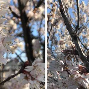 陽当たりが良いのか? 毎年、早く咲く桜が今年も咲き始めた事を 義母の病院の行き帰りに車窓から確認 今週は月曜日から雨続きでなかなか近く迄 行って写真を撮る事ができないでいて やっと週末の昨日風は強かったのですが なんとか娘の自転車を借りて撮りに行く 事が出来ました。 車がびゅんびゅん通るような沿線で マンションの駐車場と川の間の土手に 生えていてすぐ後ろにも桜の木がある のですがまだまだ蕾は固いです。 本当にこの木だけ満開なのです。 周りはちょうど梅が咲き始めているので もしかして梅?って思って帰って来たの ですが… 次のpicで花を拡大して頂くと分かると 思うのですが萼から伸びる茎長いので 桜、だと思っているのですが… 違う?かなぁ…自信が無いですが 投稿します。