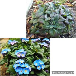 0℃~10℃🌤️ 霜の朝。 お天気になる予報なのですが、冷たい雨が降ってきました。 花壇の大輪わすれな草・ミオソティスミオマルク。 去年かわいかったので今期も秋に植えました。 耐寒-15℃ということで霜除けしないでいましたが、葉っぱが茶色くなっていたので、霜がおりそうなときは夜箱を被せて朝とるようにしています。 が、昨日は忘れていました💦 下は去年2月下旬、咲き始めた頃の様子です。 今年も無事に咲いてくれるかな🍀 鉢上げして夏越しにチャレンジしてみましたが、梅雨頃だったかな、全部ダメになりました。