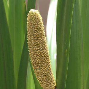 水性植物 「匂い菖蒲・ニオイショウブ」 ニオイショウブの花です。 今年はニオイショウブの成長が、肥料をあげるのが遅かったのか、ひと月遅れて成長して来ました。 本来は5月の節句頃に菖蒲湯に入るのに刈り取るのですが、その頃はまだ葉っぱが小さかったです。 花と言っても、集合体の花なので、見た感じパットしませんが、この蒲の穂のような形をしているのが花の集まりです。