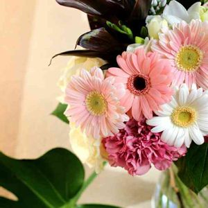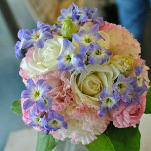 小花の花束にチャレンジ! ちょっと窮屈そうかな?