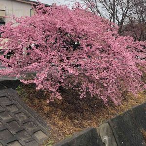 おはようございます☺️☘️ 地元の桜が満開になりました😊 花が、下向きにまとまって咲く 紫紅色の桜です🌸