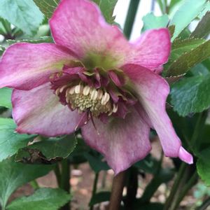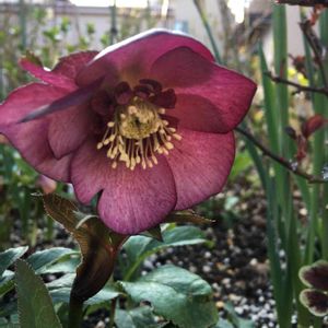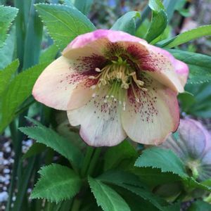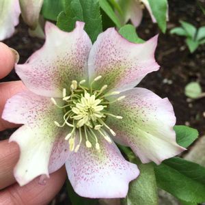 クリスマスローズ 一重ですが剣弁で、スポットが入っています。