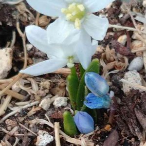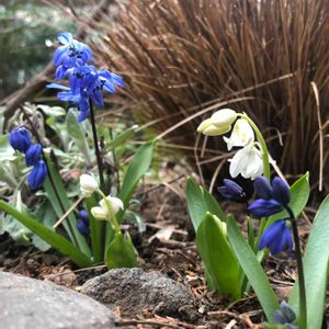 おはようございます (*ˊᵕˋ*ค⁾⁾✲゚︎* 🌸 プッシュキニア 🌸 💙シラーシベリカ 💙 春の妖精🧚♀️💫プッシュキニア 🤍💙と シベリカ 💙が咲いてました ❀.*・゚ 寒い寒いと 思っていましたが お花は ちゃんと 目覚めていました 𓂃 ✿𓈒𓏸 いい日でありますように 🍀*゜