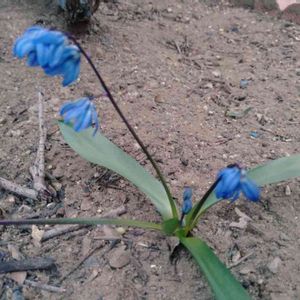 シラー シベリカ。 チオノドクサみたいに小さな花。昨年、秋に植えたのかな・・。花壇からひょっこり顔を出しています。