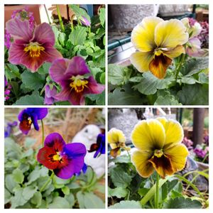 初めて庭人さんのビオラをお迎えしました。全部で5鉢。娘と一緒に選んで楽しかったです。 なんとも言えないお色で迷ってしまいました。植え付け前の全員集合。