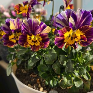 2025年2月 庭人さんビオラ はいちーず✌️してるみたい 自由が丘La terreオンラインストア にて購入 え?まだパンジービオラ買うの?って自問しましたが、大満足 ひとつは東京モダンガールと教えていただいたけど他はなんという名前がついているんだろう 57番は…なつみかな?