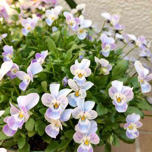 風が強い1日となり 雨予報でしたが いまだに雨は降らずの みかん地方です こんなご時世 栄養をとって お体大切にして下さいね🍀 ヴィオラ「藤娘」 薄紫から白に 退色してゆくのが綺麗です😍 お花がずっと元気なので いつ花柄摘みをしたら良いか 悩んじゃいます