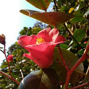 洗濯物を干していたら お隣の椿が 「おはようさん! いい日にしてね(^^)/」と 声を掛けてくれた! 物語②