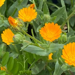 今日のお花、キンセンカ🌼 2021.2お散歩中🚶♀️のpic🍀 キンセンカにも、いろいろ種類があるのですね❣️ 左上は、姫キンセンカ💖