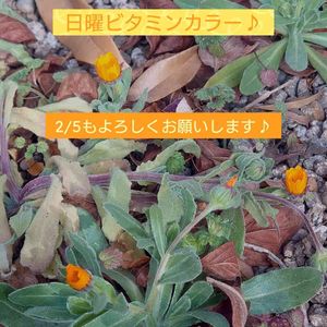 2/5㈰① 🏷日曜ビタミンカラー♪ 本日もよろしくお願いいたします♪ カレンデュラ フユシラズ の蕾がポツポツと出てきました😃 これから咲くのが楽しみですね🧡🧡🧡