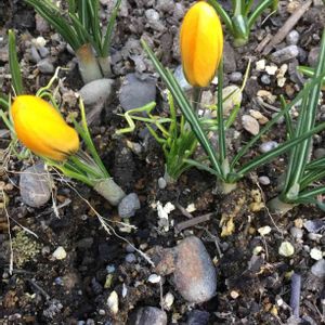 ホトちゃんが眠ってる場所。 春に咲くようにと妻がクロッカスを植えました。 今朝見たら芽🌱が出始めた様な。 花の縁取りが黒くラインが入ってたら 嬉しいかも?笑笑