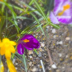 今日は定休日。 昨日とは違い天気はとても良い。 こりゃ〜タイヤ交換のChanceとみて早速物置小屋へ。 するとなんて事でしょう〜😃 黄色と縞紫色の間から 紫色一色のクロッカスが! これで3種類のクロッカスが咲きました。 タイヤ交換が終わりセルフスタンドへ行き、空気圧をみて空気入れ! 洗車してた女性が僕に声を掛けてきた。 こんにちわ〜🧑🏻🦰 はいこんにちは〜👴🏼 今日はとても良い天気ですねぇ〜👴🏼 🧑🏻🦰はい、とても気持ちの良い天気ですねぇ〜 他人に声をかけたくなる様な天気なんですよね。 他愛もない会話だったが、なんとなく ほっこり。