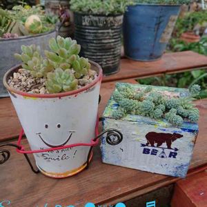 毎日暑いね😅 外で仕事してる人大変だよね〰️ 右は舛をリメイク 左 百均凄く可愛い鉢 ワイヤーかご作ろうと思ったけど 断念(笑)😂