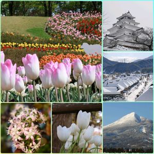 𓏸︎︎︎︎𓈒𓂃今日のお花 チューリップ🌷𓈒𓂂𓂃⁎ .。❀ * と 厳冬の風景❄️ 今年の雪はやはり大変なようです。 街なかは何処も雪で道幅が狭まり 走る車も人も慎重にスピードダウン⤵️ 待ち遠しい春ですね🌸 右上から 鶴ヶ城🏯 大内宿⛄️ 会津磐梯山🗻 真ん中のチューリップは、5月の 国営みちのく杜の湖畔公園でのPhoto❤ 2025.1撮影 福島県会津若松市ほかにて