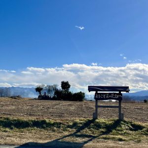 草を刈り払った後の畑 冬枯れの中でタンポポが一輪咲いていました💕