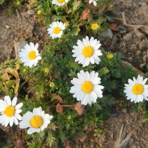 何気なく、ぶらぶらしていたら、畑にたくさんの白い花が咲いていました。 何だろうと、近づいたらノースポールでした。 植えたのではなく、残っていた種か根が成長したのどろうか?🌸🌸🌸
