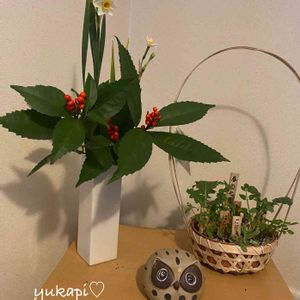 お正月の生け花🎍 春の七草と🌿🍃🌱 福が来ますよう♪ フクロウさんを置いてみました🦉✨ 2022年ももう少し💦 GSで楽しませて頂きました💕 来年もよろしくお願いします♡ 良いお年をお迎え下さい*\(^o^)/*